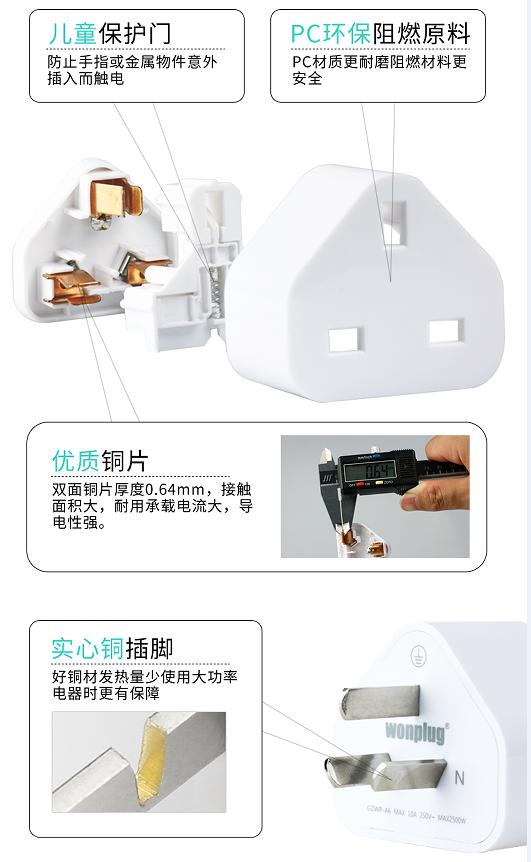 优点:为苹果充电器量身定制,带接地,功率大,有保护门,环保阻燃材料多重特点。