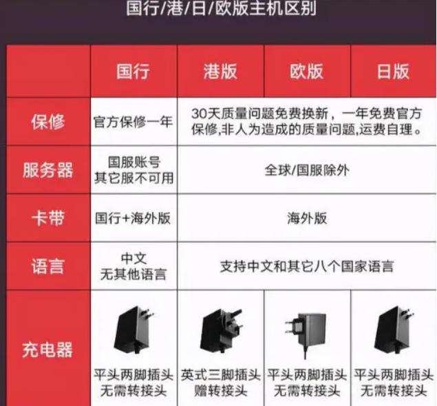 下图是国行/港版/日版主机的区别: